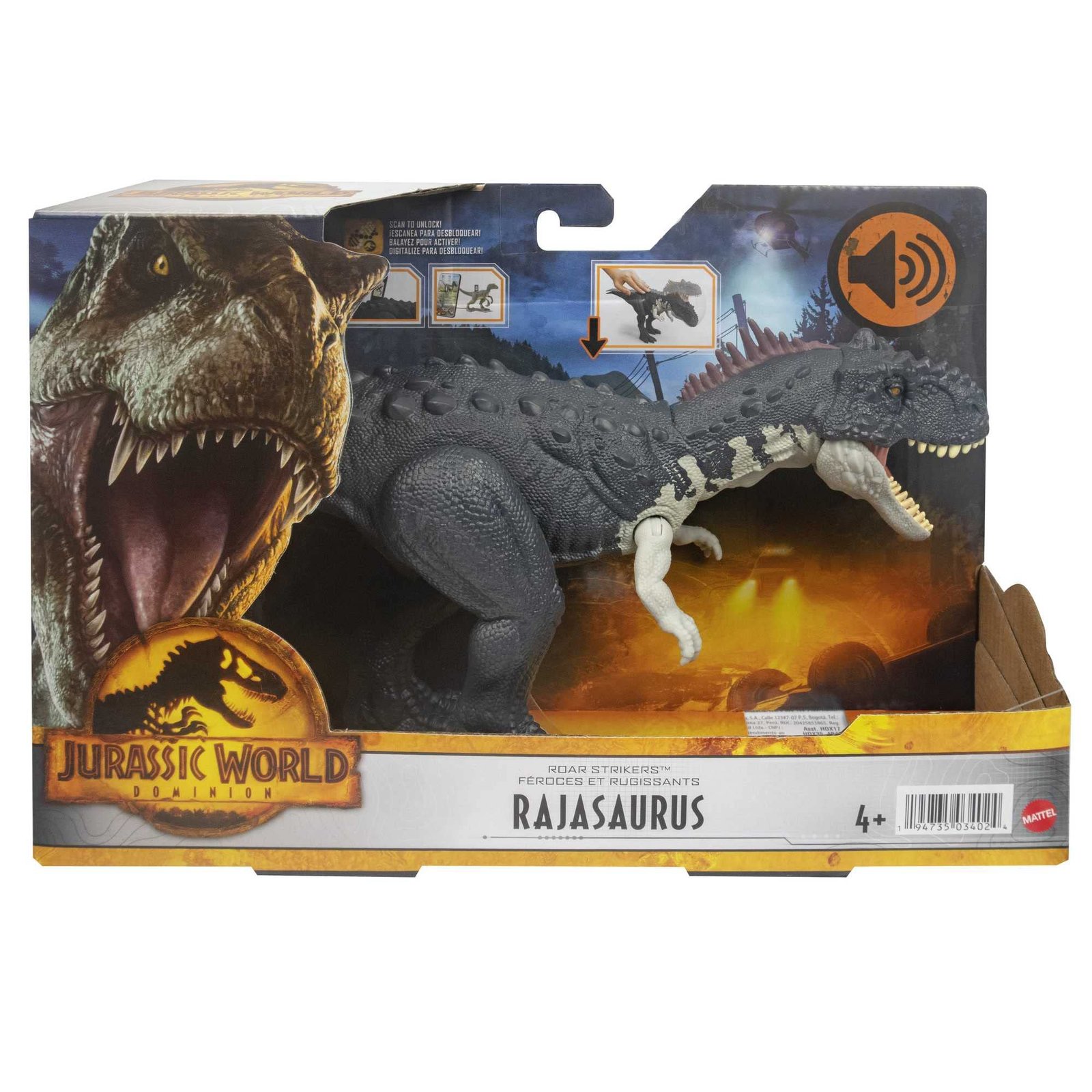 Cette figurine de Rajasaurus possède des points d’articulation, une morphologie authentique et des couleurs et textures réalistes pour des histoires immersives et dynamiques. Prolongez vos aventures virtuellement et donnez vie à ce dinosaure Attaque Rugissante grâce à la réalité augmentée (RA) !