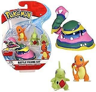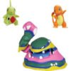 Chaque boîte contient 3 figurines en PVC de 5 à 7 cm représentant les personnages Grotadmorv d’Alola, Salaméche et Emprylex avec une coloration précise et des détails fins.
