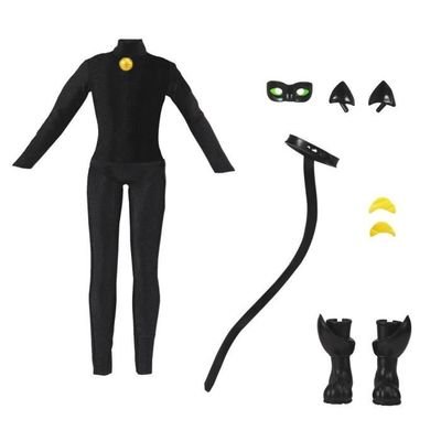 1 poupée mannequin articulée 26 cm Adrien + 1 tenue entière de Chat Noir (oreilles, masque, costume, chaussures, queue de chat).